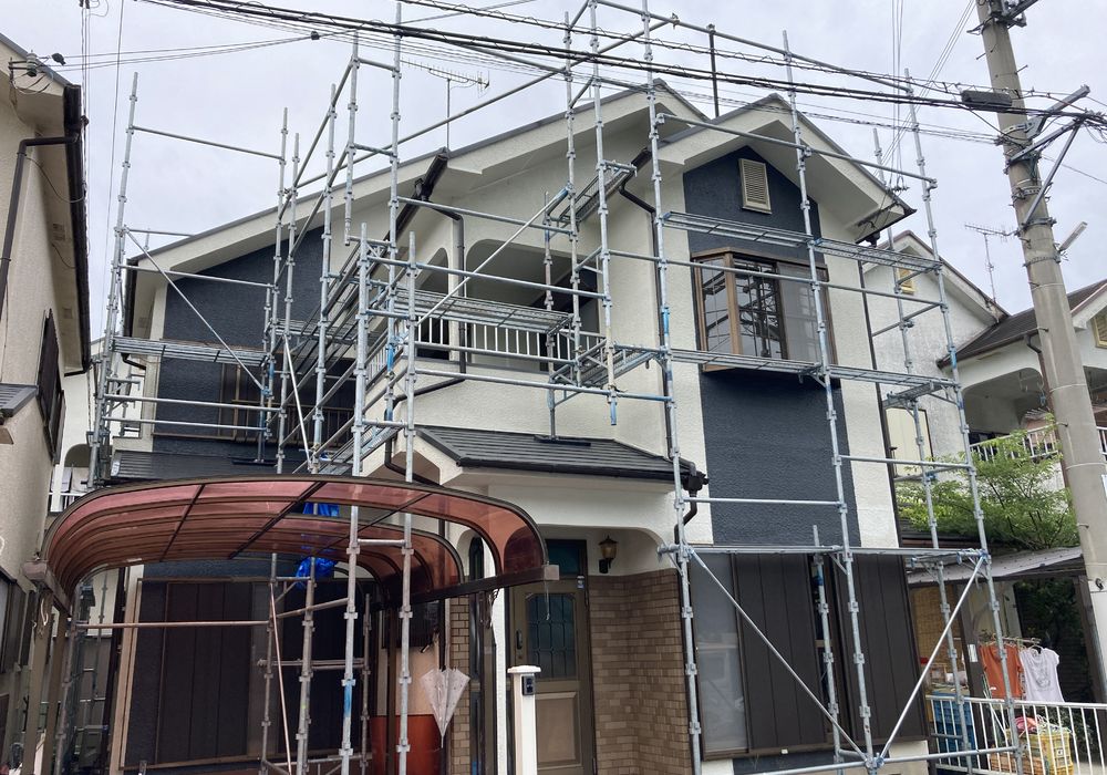 今回は和歌山県紀ノ川市でのリフォーム物件の外壁塗装用の仮設足場組立でした‼︎