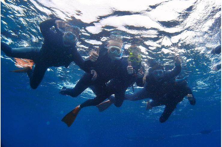 社員旅行はなんと!沖縄!?2018年、2019年は2年連続沖縄へ行きました。シュノーケリングをしたり、沖縄料理を楽しんだり。